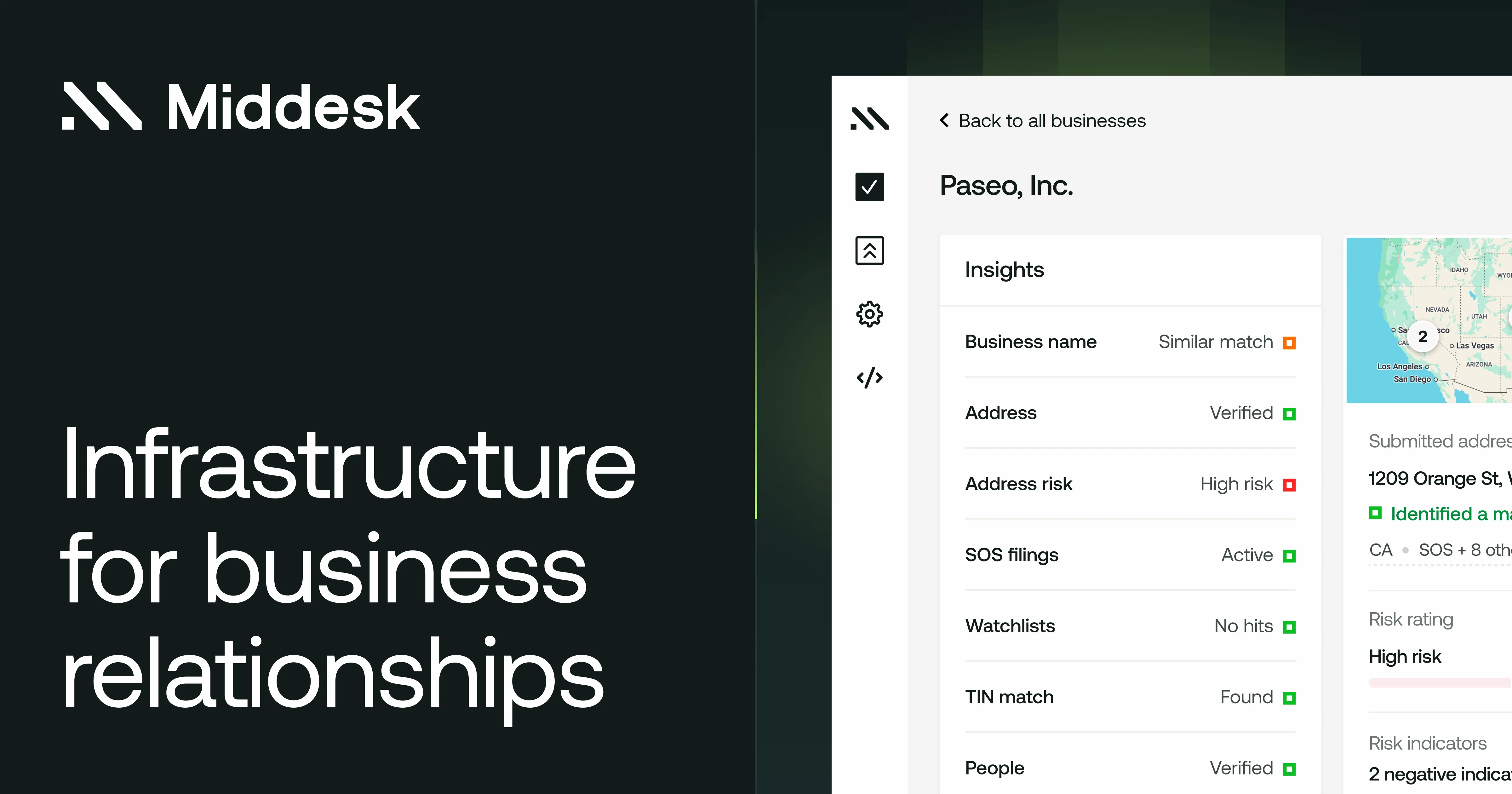 Middesk is the Business Identity Platform that helps companies verify and underwrite their customers, automate KYB, register for payroll taxes, and ensure compliance — via a dashboard or API.